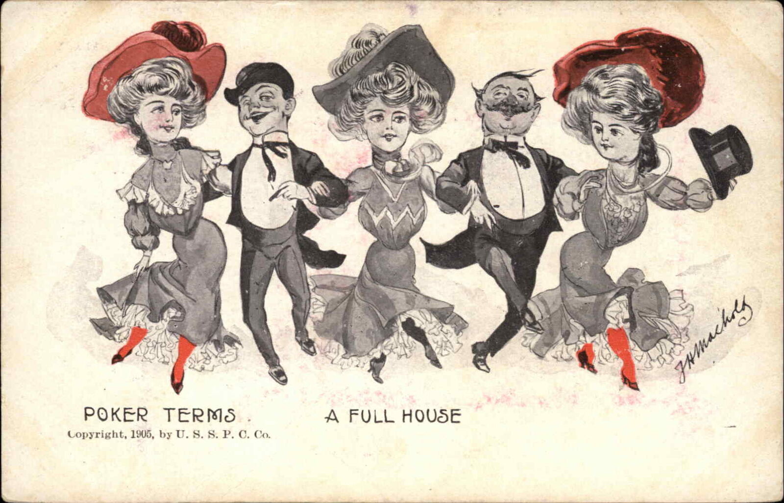 JH Macholy Poker Terms Full House Couples Dancing c1910 Vintage Postcard