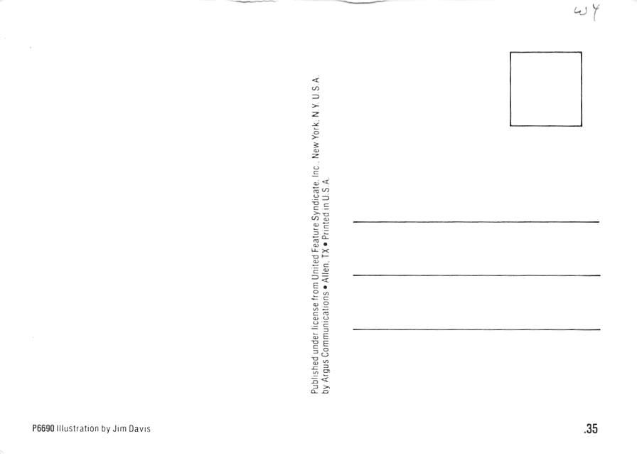 Jim Davis - Garfield Grade: 1 Category: Continental Size Postcard, Approx 4 in x 6 in (10 cm x 15.25 cm) Product Size: Continental size: 4X6 inches (10.5 cm x 15 cm) Grading Scale: Grade 1 = Perfect corners Gra ... Read More