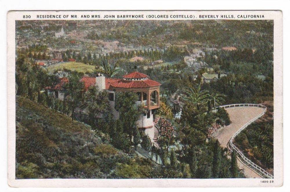 John Barrymore Actor Home Beverly Hills CA 1930 * postcard