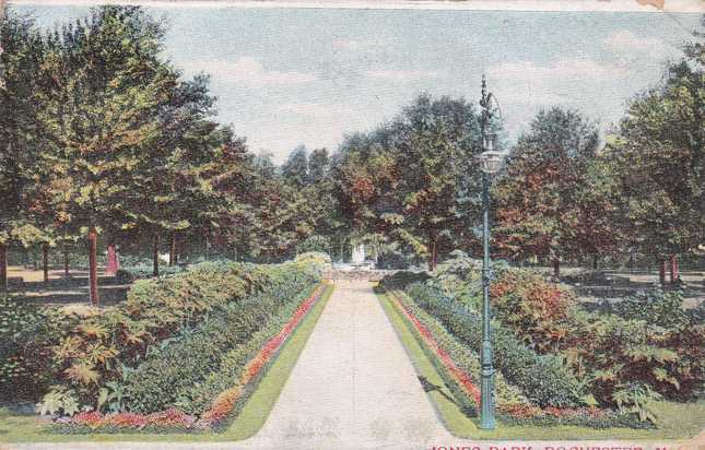 Jones Park View. Rochester, New York. Divided Back era Post Card (1907 to 1915 or so). Postmarked at Rochester on December 10, 1908. Poor condition - Creases - Edges may be cut off.