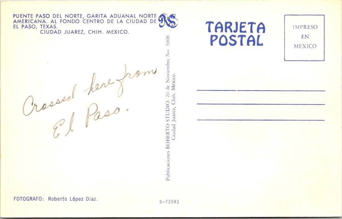 Juarez, Mexico CUSTOMS & BORDER CROSSING El Paso~Texas ca1950's Postcard