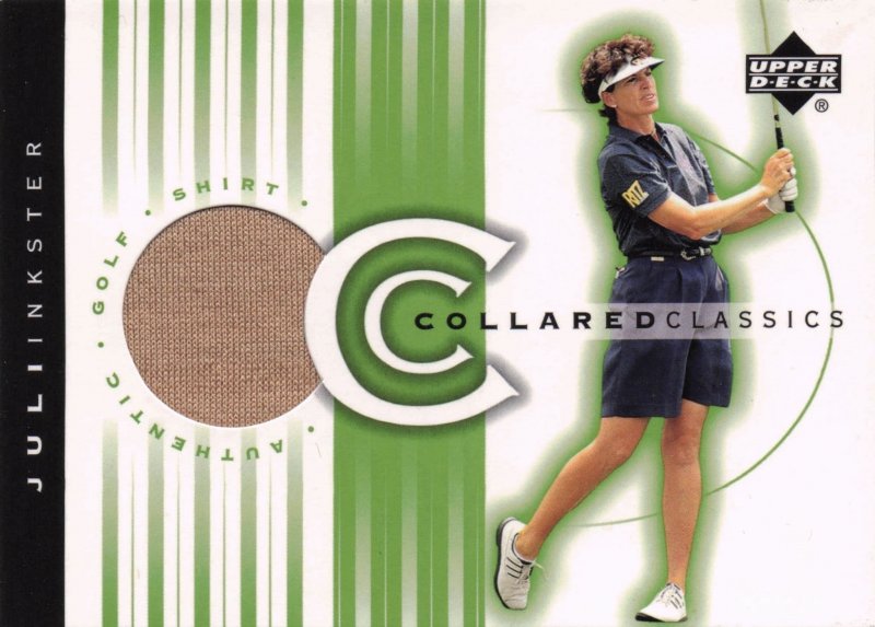 GB0218 Official 3.5" x 2.5" Upper Deck Collared Classics 2003 rare trading card with a swatch housing a piece of a genuine tournament shirt worn by Juli Inkster and fully authenticated on reverse in mint condition. ... Read More