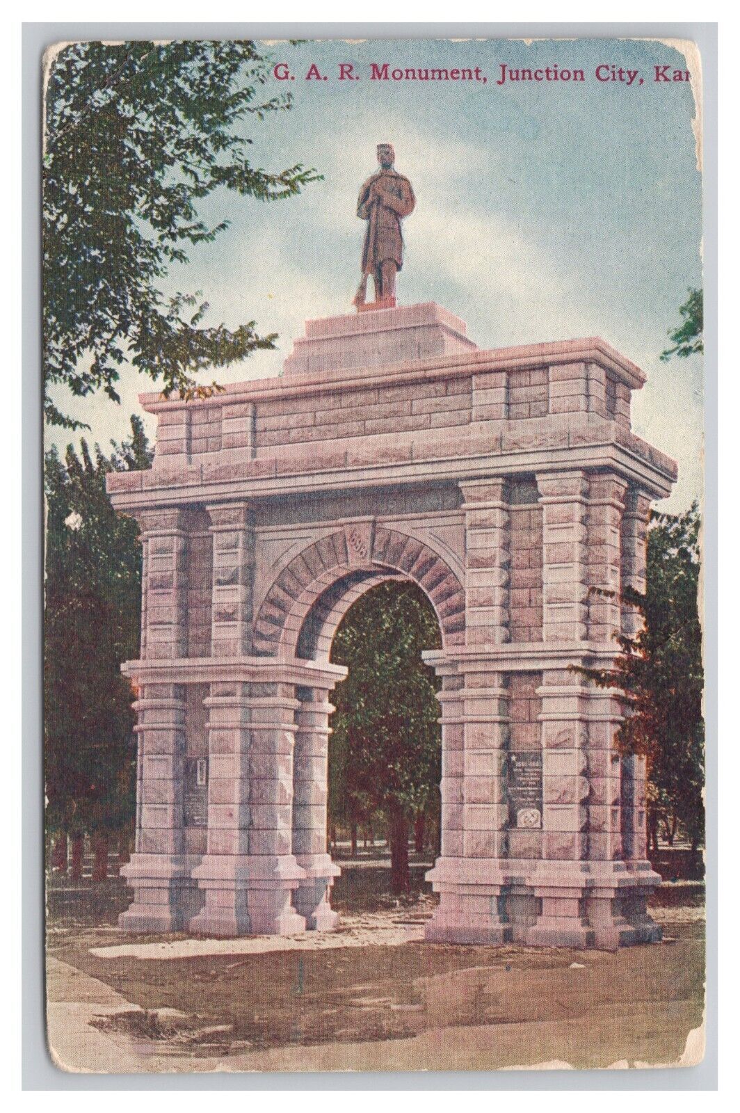 Junction City Kansas G. A. R. Monument c1910 Postmark
