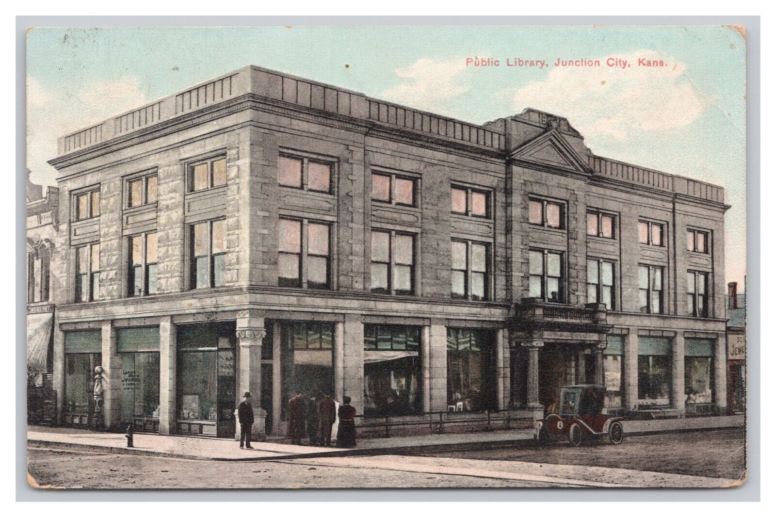 Junction City Kansas Public Library Postcard c1908 Postmark