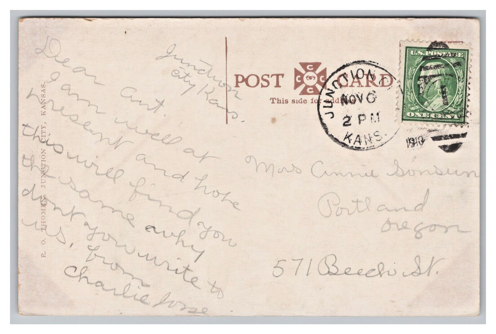 Condition: Mailed, Showing Wear From Handling. Writing On The Back. Reasonable Offers Always Considered. Junction City Kansas West Seventh Street Postcard c1910 Postmark