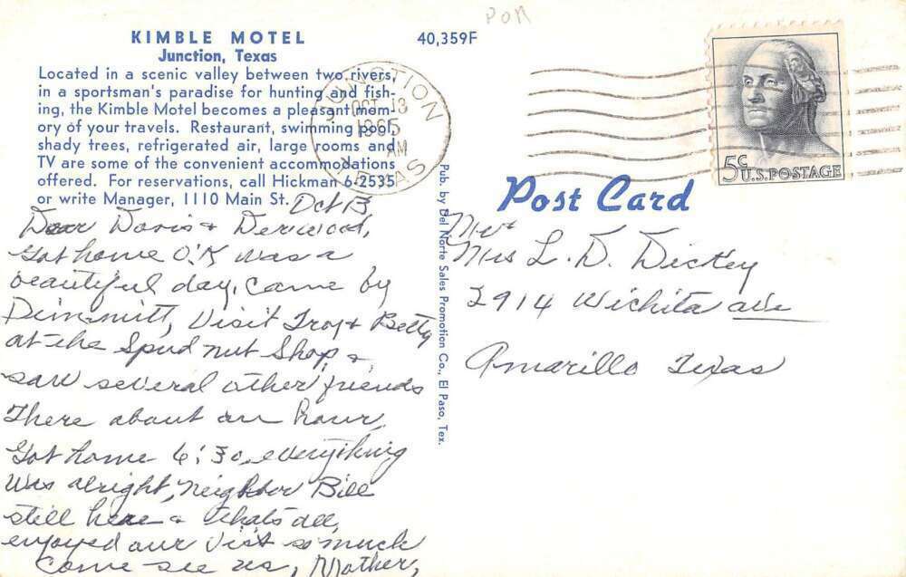 Junction texas kimble motel vintage postcard aa40389