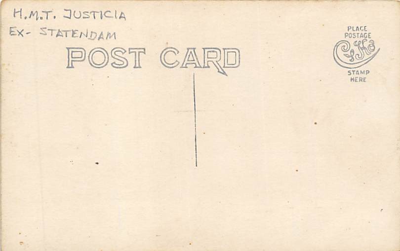 Justicia Ex - Statendam, Real Photo Misc Ship Line Ship Postcard ,