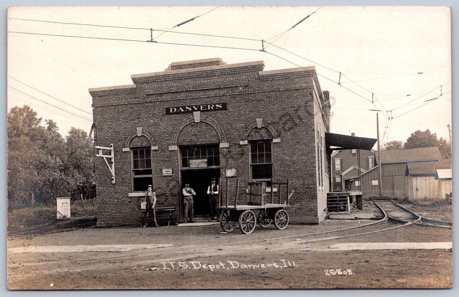 K11/ Danvers Illinois RPPC Postcard c1910 ITS Trolley Depot Wagon 253