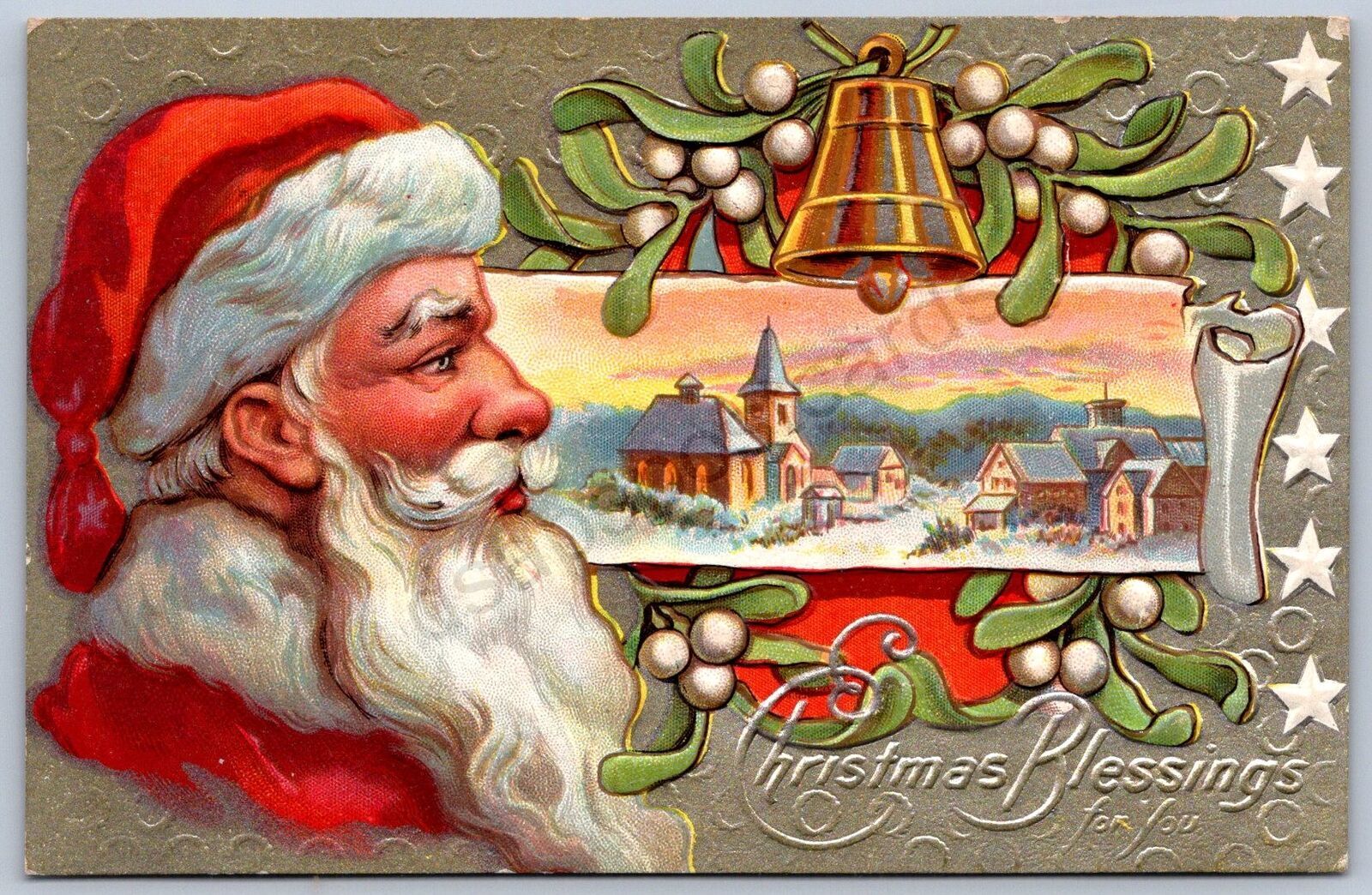 K16/ Santa Claus Christmas Postcard c1910 NashSilver Snow 463