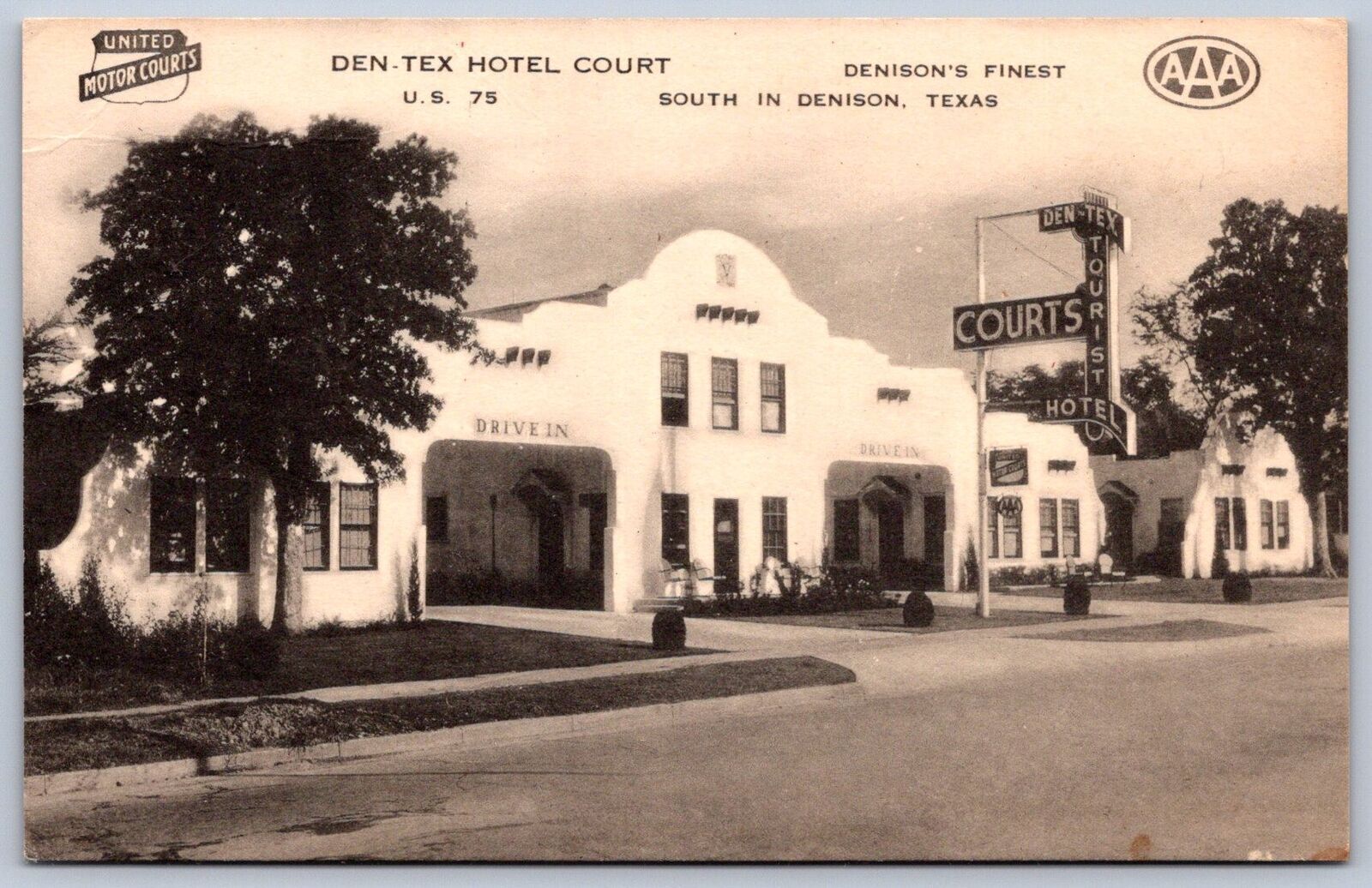 K17/ Denison Texas Postcard c1940s Den-Tex Hotel Court 13