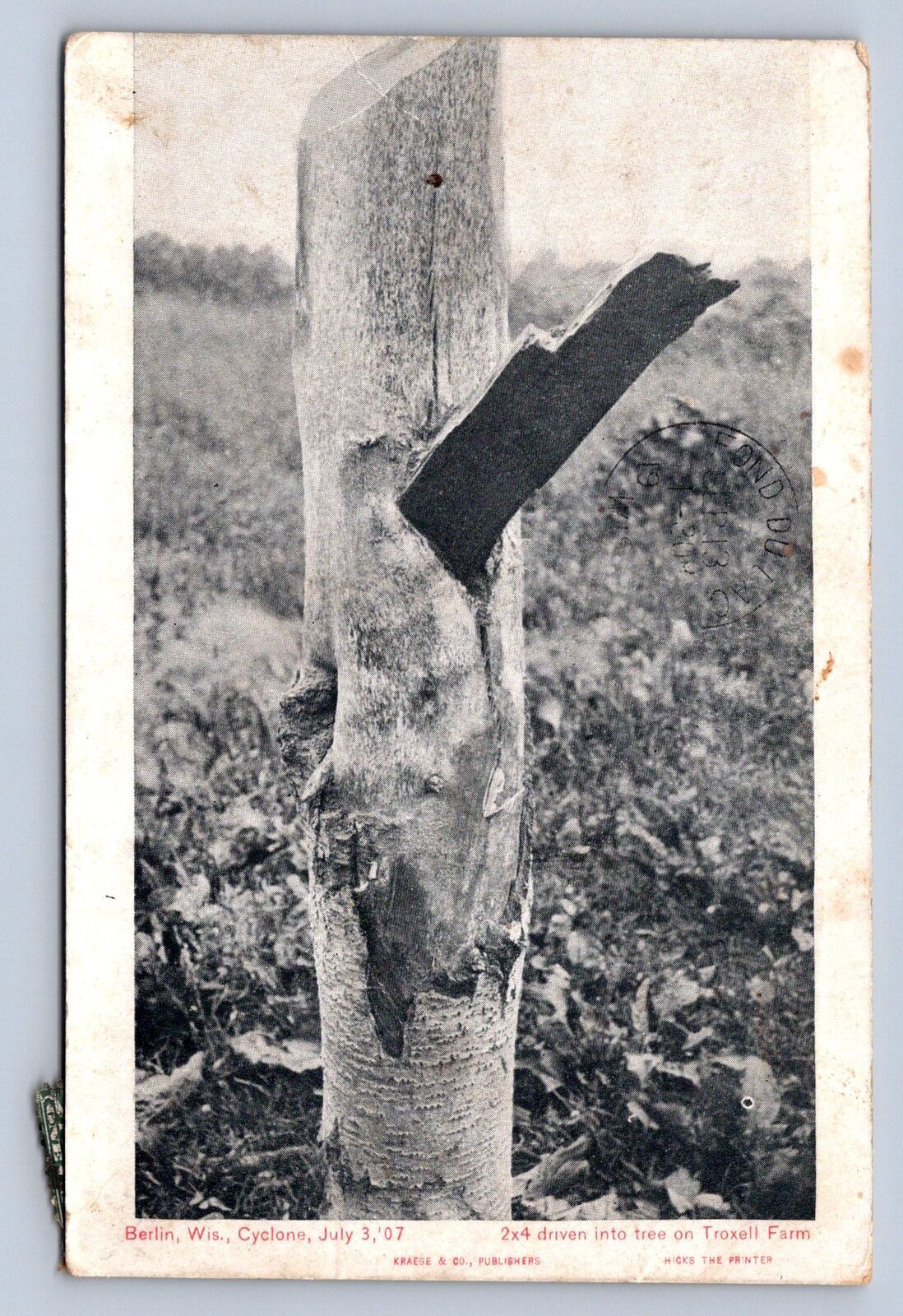K2/ Berlin Wisconsin Postcard c1910 Cyclone Disaster Troxell Lumber Tree 506