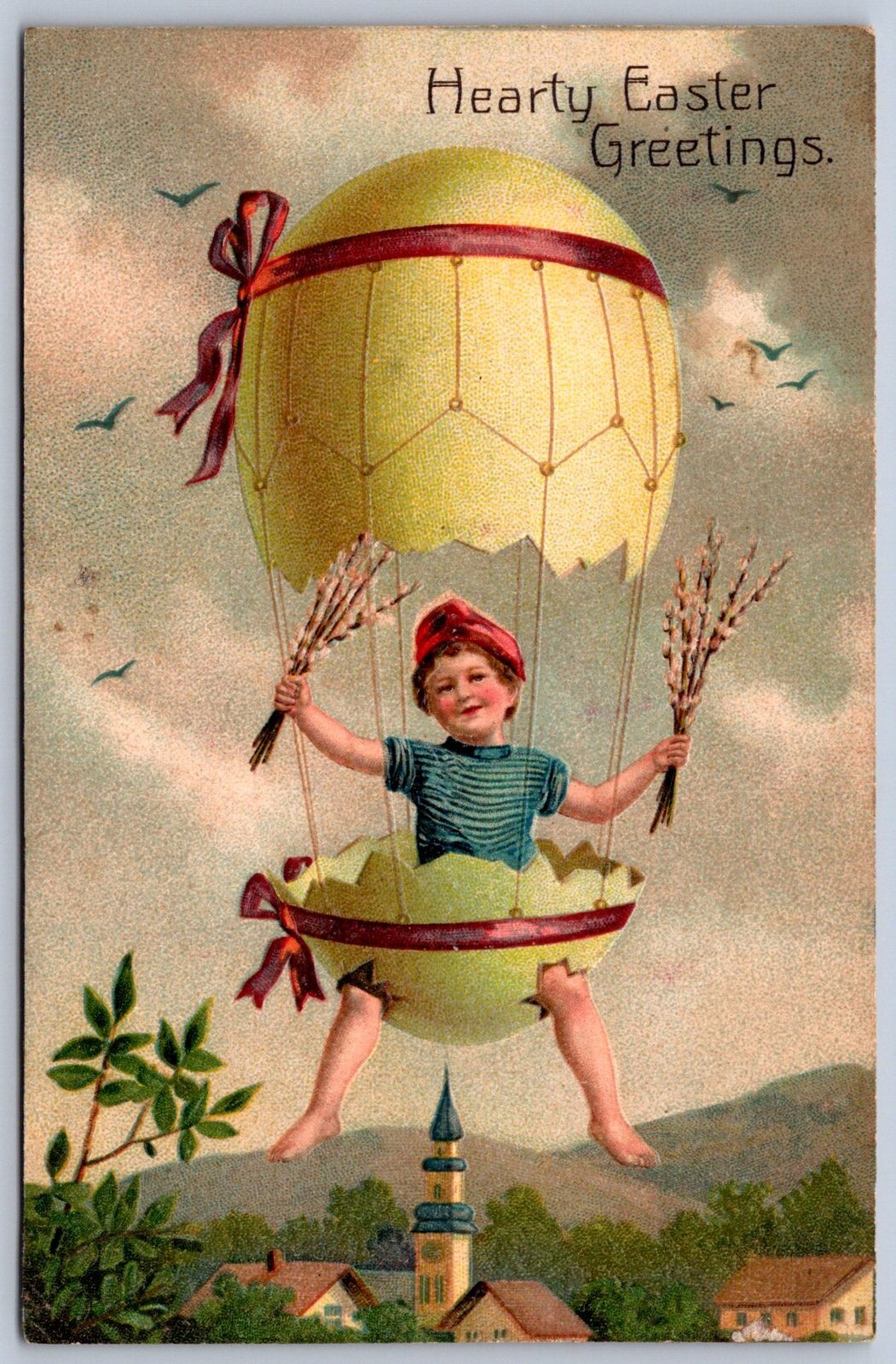 K26/ Easter Postcard Holiday Greetings c1910 Hot Air Balloon Child 175