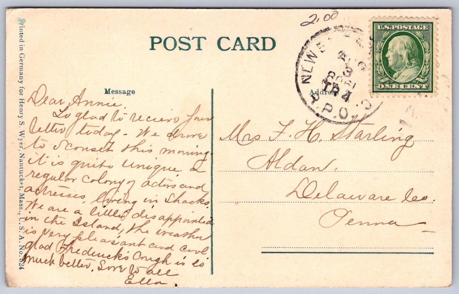 VG condition. Neat old postcard. Feel free to ask questions. To receive shipping discount, please pay for items together. See my excellent feedback.