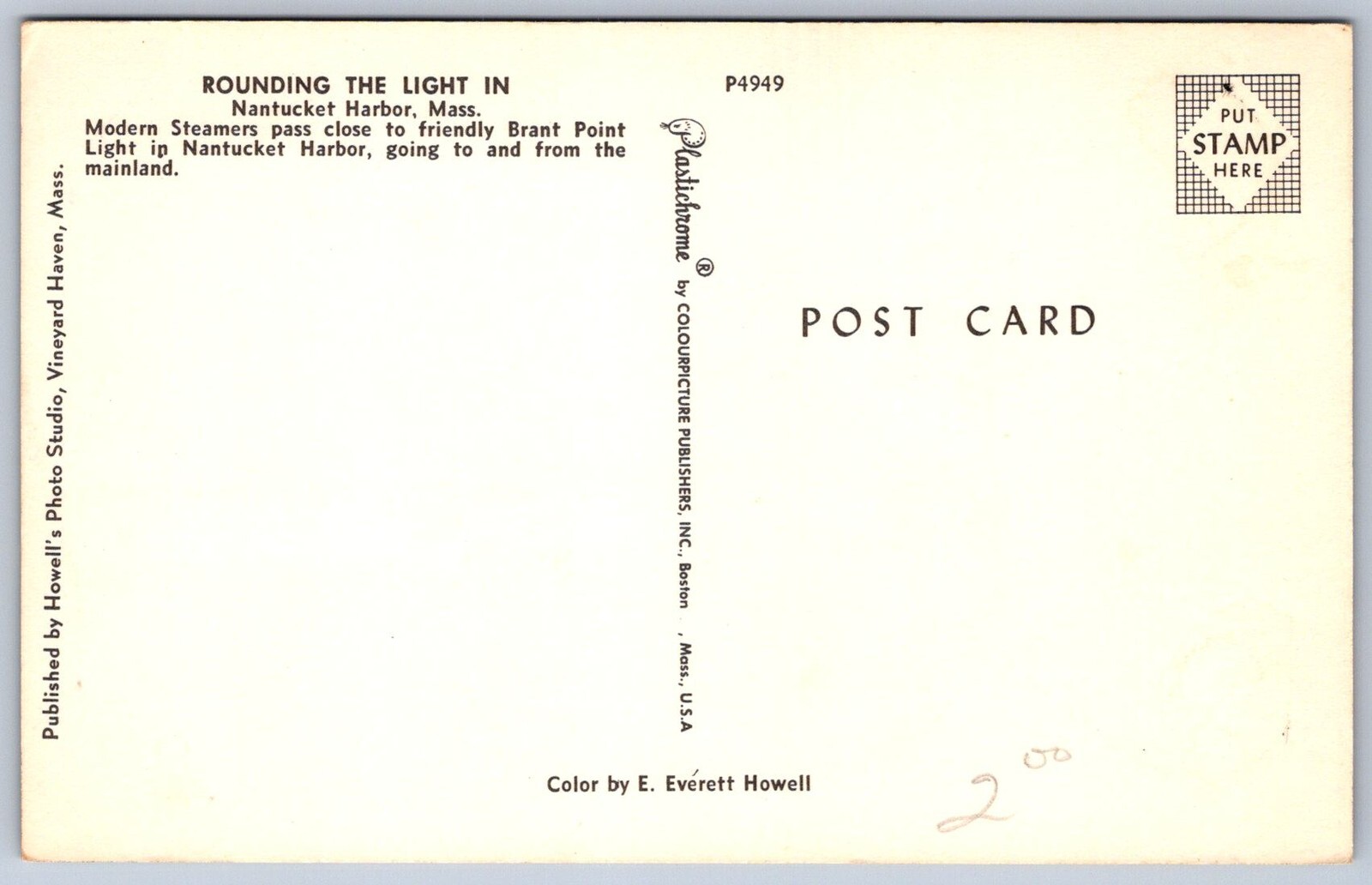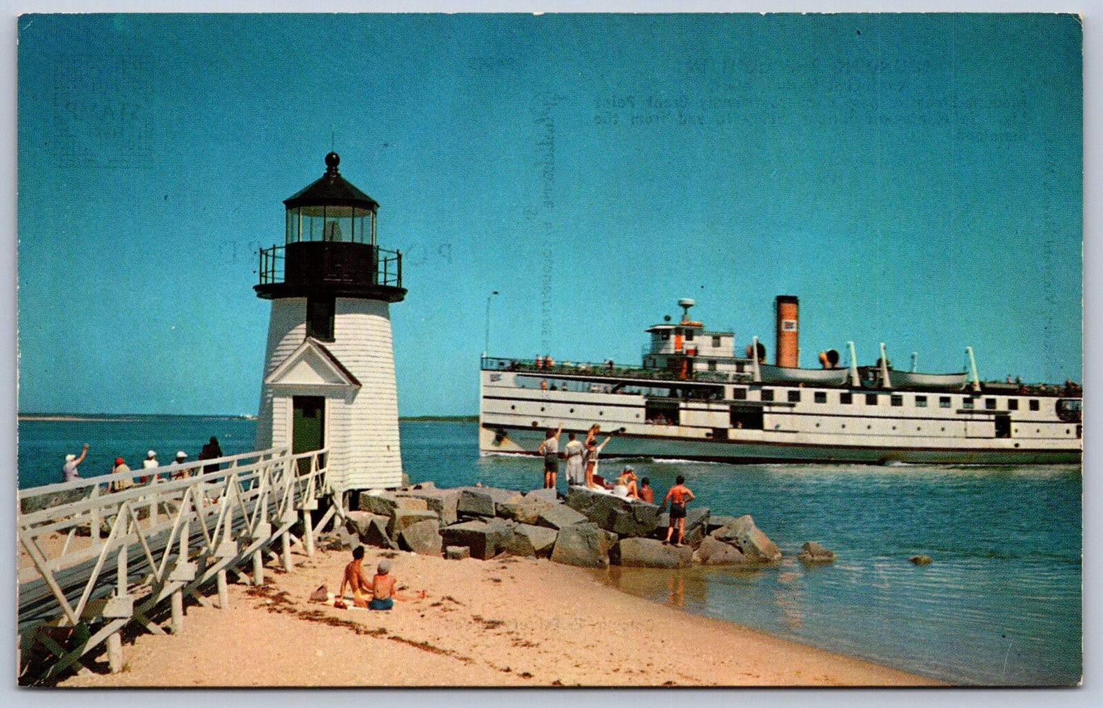K27/ Nantucket Massachusetts Postcard Chrome Brant Point Lighthouse 301