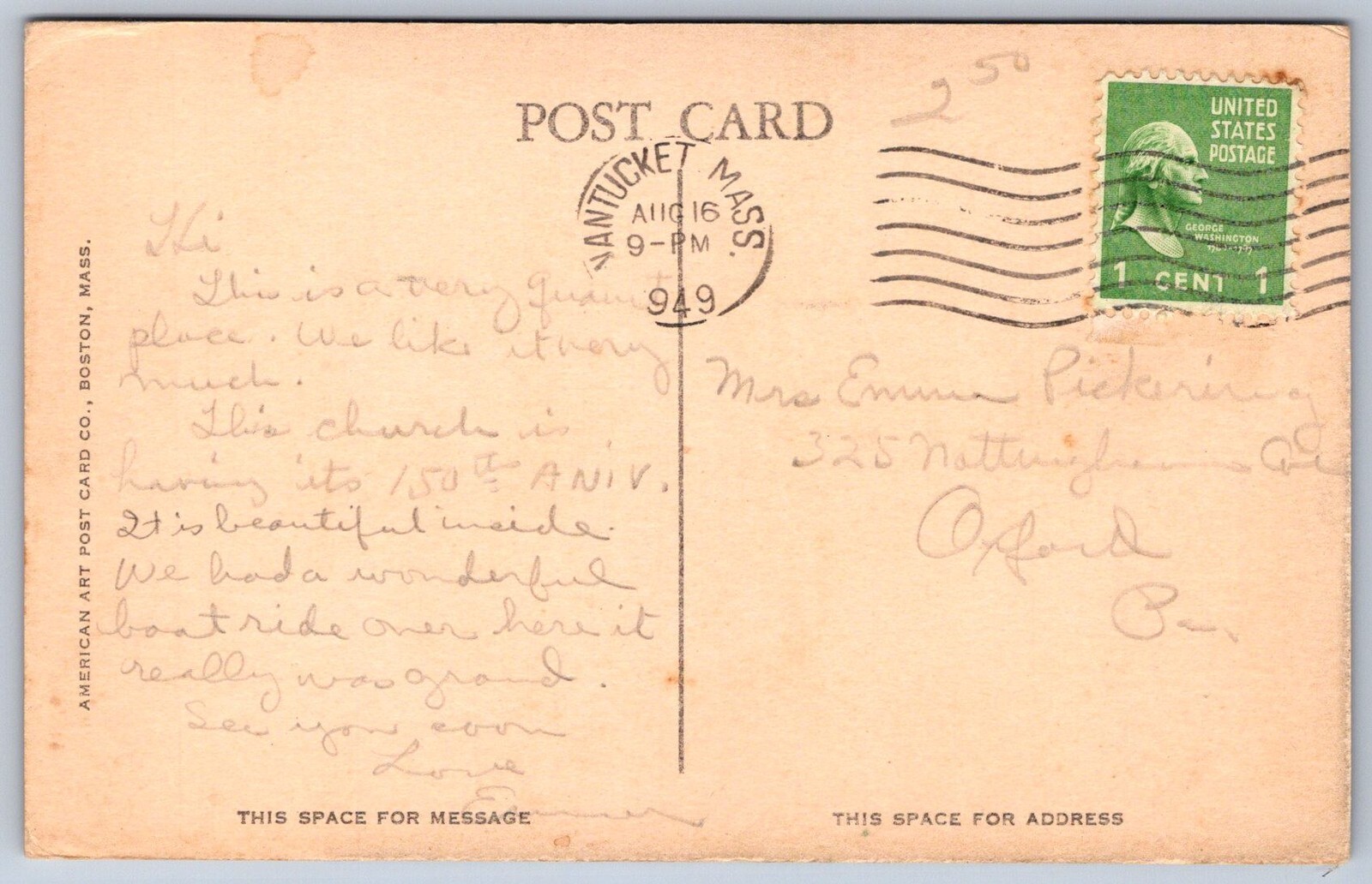 K28/ Nantucket Massachusetts Postcard c1940s Centre St Methodist Church 95
