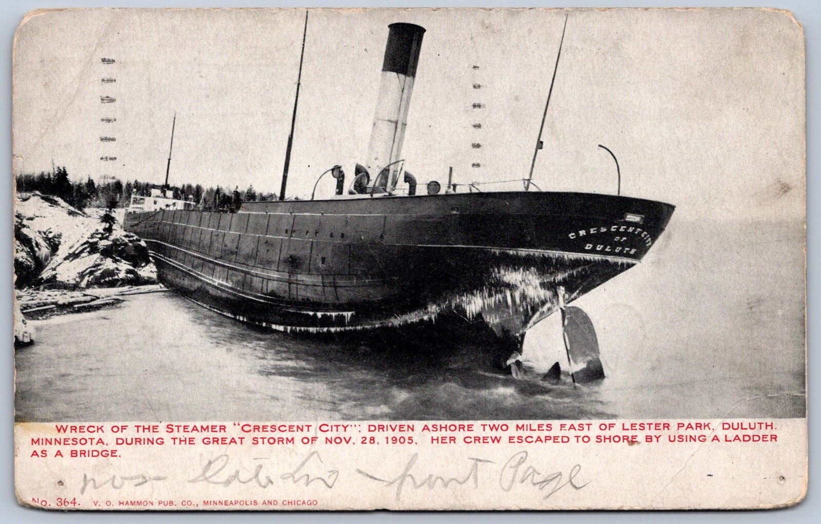 K29/ Ship Postcard c1910 Steamer "Crescent City" Wreck Disaster Duluth Minn 281