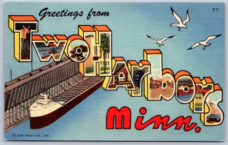 K31/ Two Harbors Minnesota Postcard c1910 Large Letter Greetings from 318