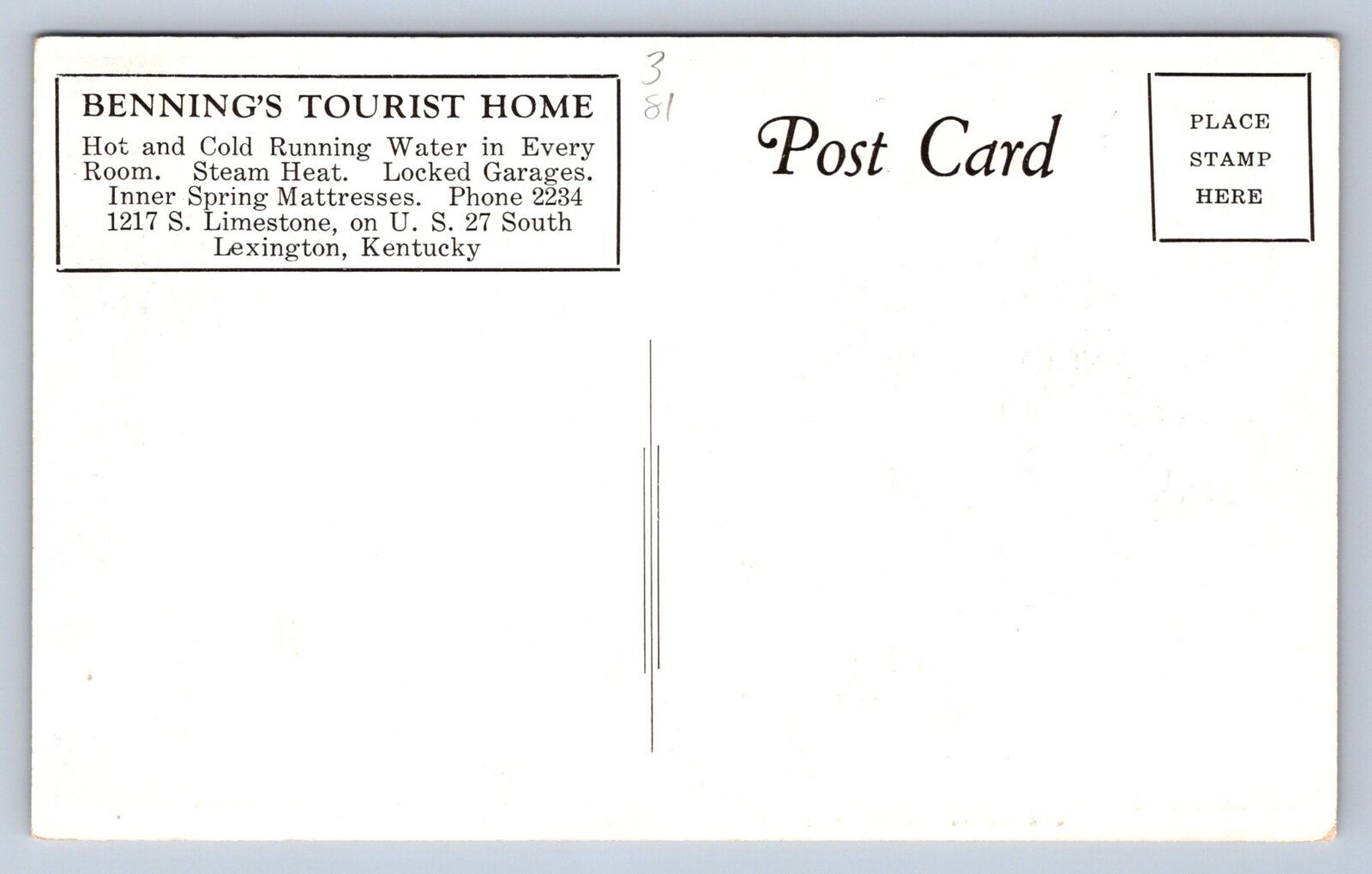 K4/ Lexington Kentucky Postcard c1940s Bennings Tourist Home 95