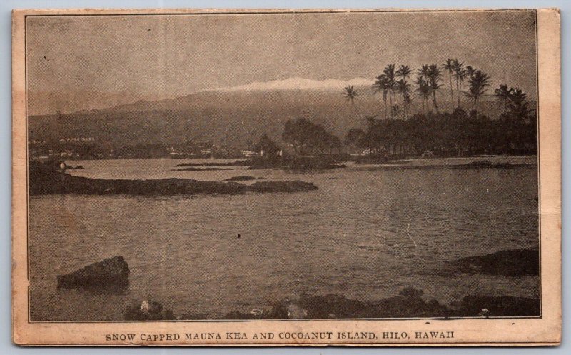 K41/ Hilo Hawaii Postcard c1910 Cocoanut Island Mauna Kea Snow 272