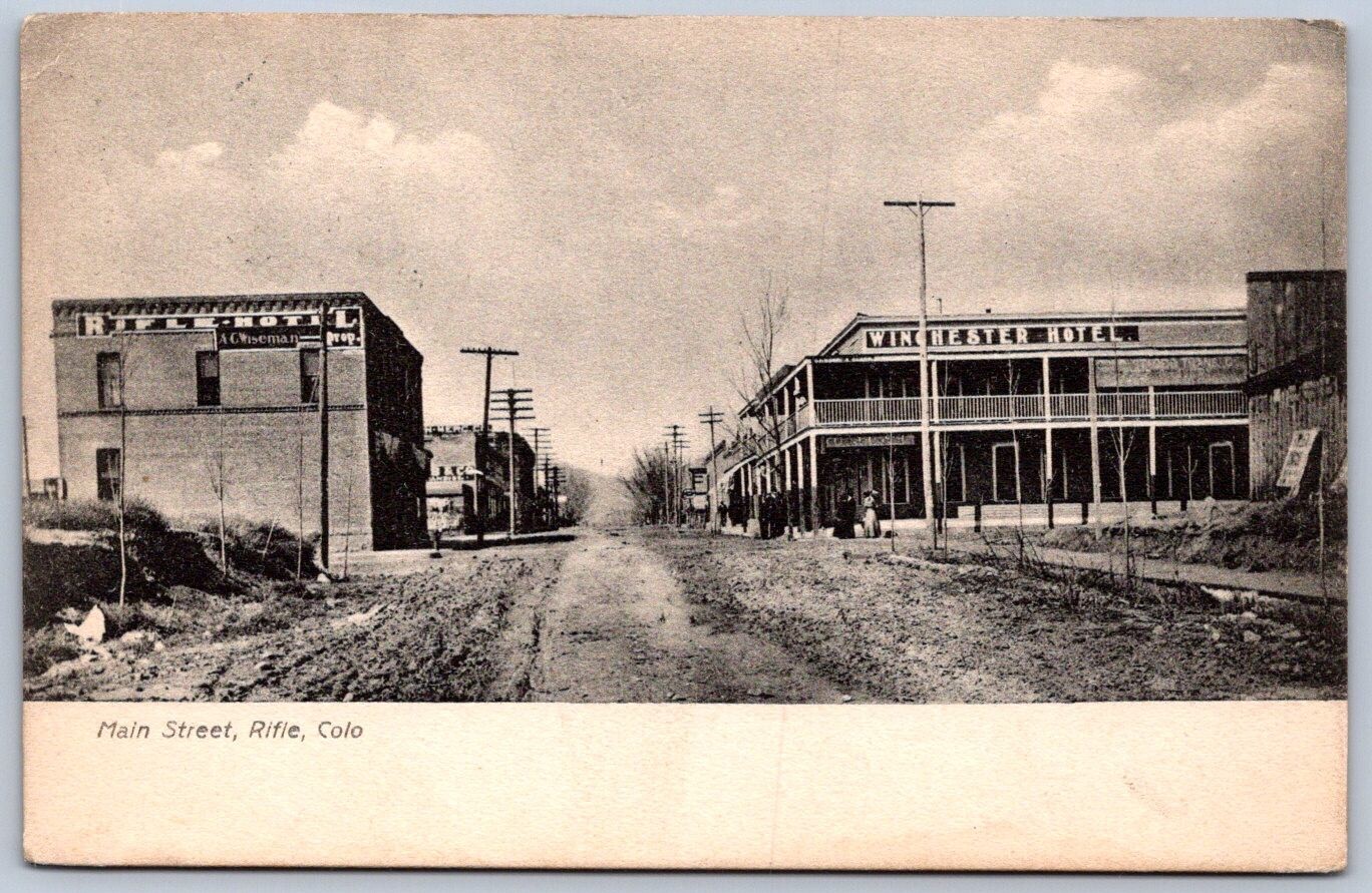 K45/ Rifle Colorado Postcard c1910 Main Street Store Winchester Hotel 512
