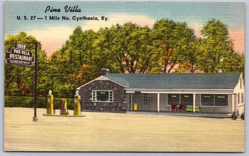 K46/ Cynthania Kentucky Postcard Linen Pine Villa Gas Station Restaurant 55