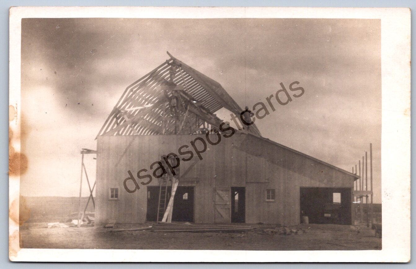 K50/ Interesting RPPC Postcard c1910 Americana Barn Construction Men 205