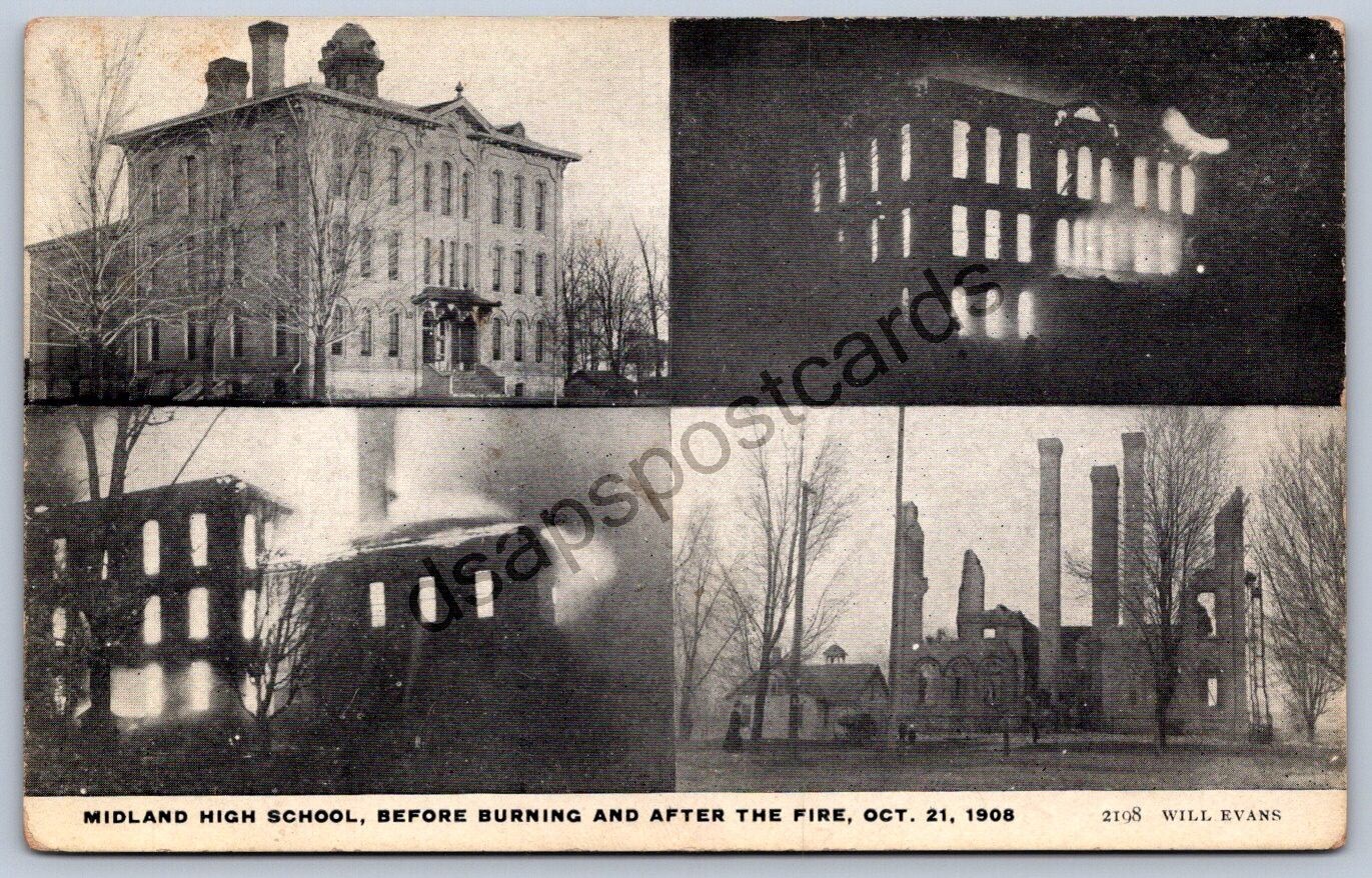 K50/ Midland Michigan Postcard c1910 High School Fire Disaster 4View 347