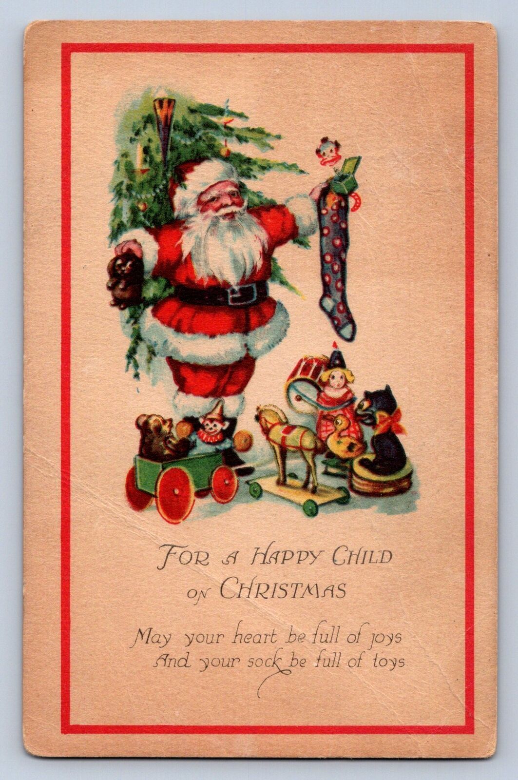 K9/ Santa Claus Christmas Postcard c1910 Stocking Toys Tree 44