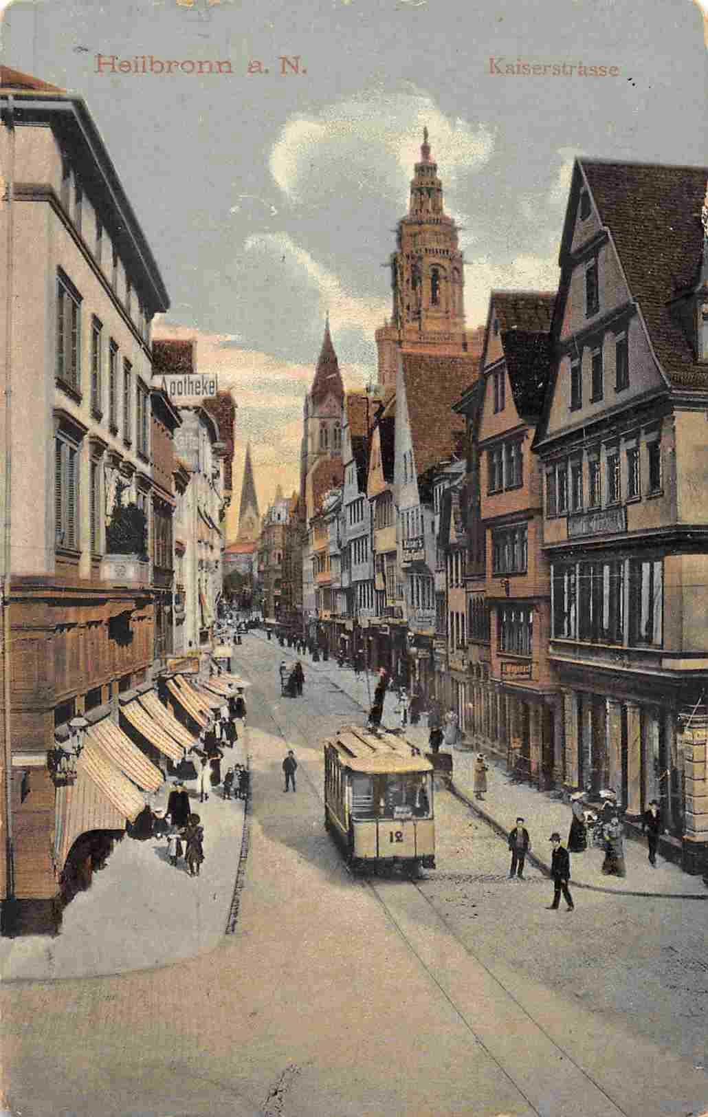Kaiserstrasse Street Scene Heilbronn Germany 1910c postcard