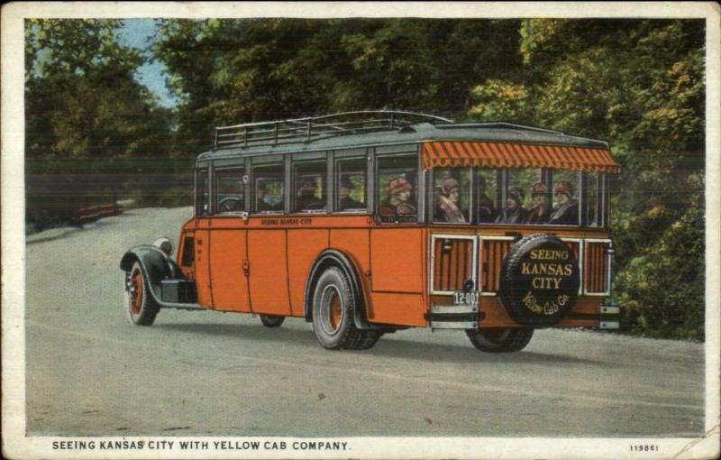 Kansas City MO Yellow Cab Co Bus c1920 Postcard