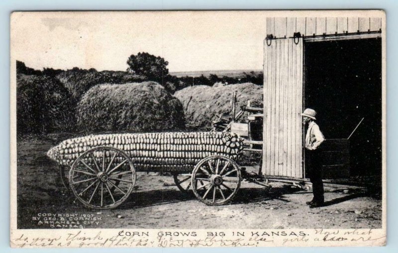 KANSAS EXAGGERATION "Corn Grows Big in Kansas" KS 1907 Postcard