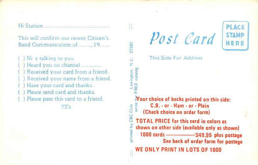 C = Continental Size Postcard - approximately 4 inch X 6 inch (15 CM X 10.5 CM)