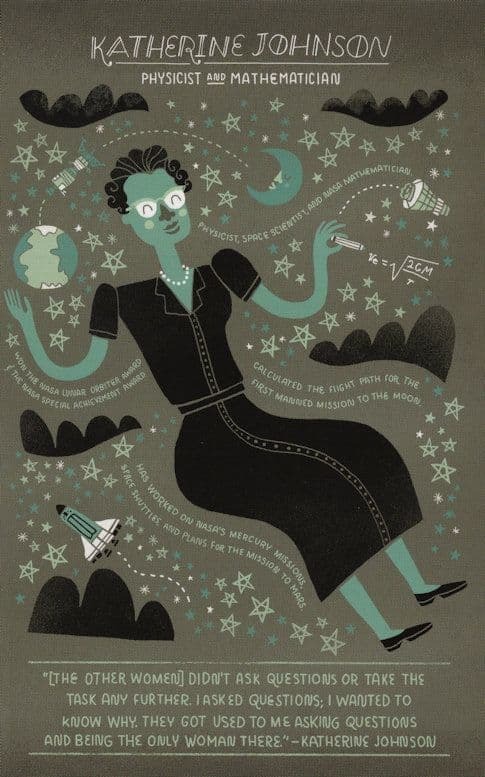 WS1 This beautiful rarely found and most specialist modern origin quirky postcard is a unique and wonderful souvenir to Katherine Johnson famous Physicist & Mathematician with an artist contemporary animated painting of her surrounded by the objects related to her studies together with one of her most memorable quotes resting underneath her portrait unused in brand new mint condition