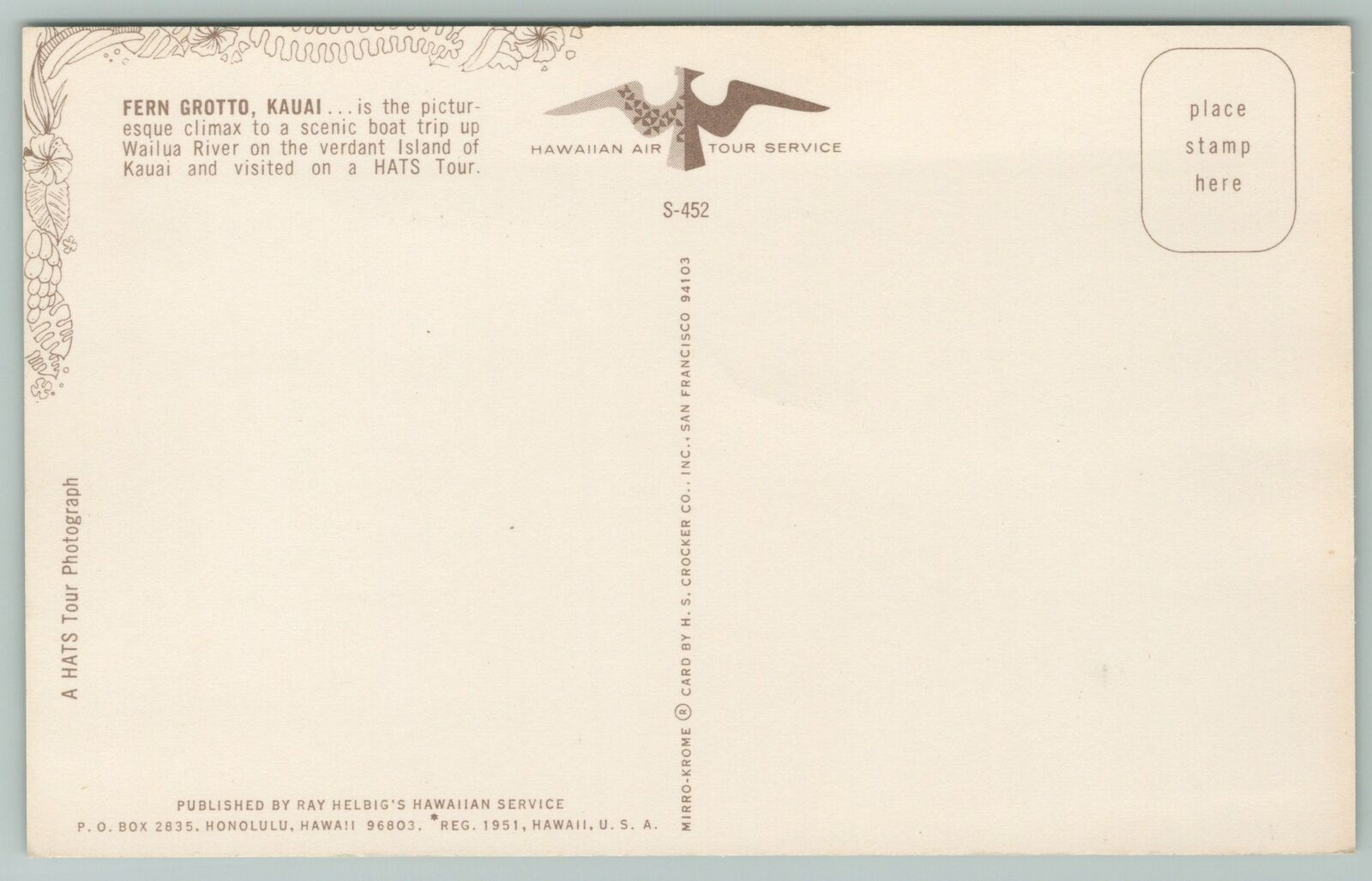 Kauai Hawaii~Fern Grotto~Standard Chrome Postcard