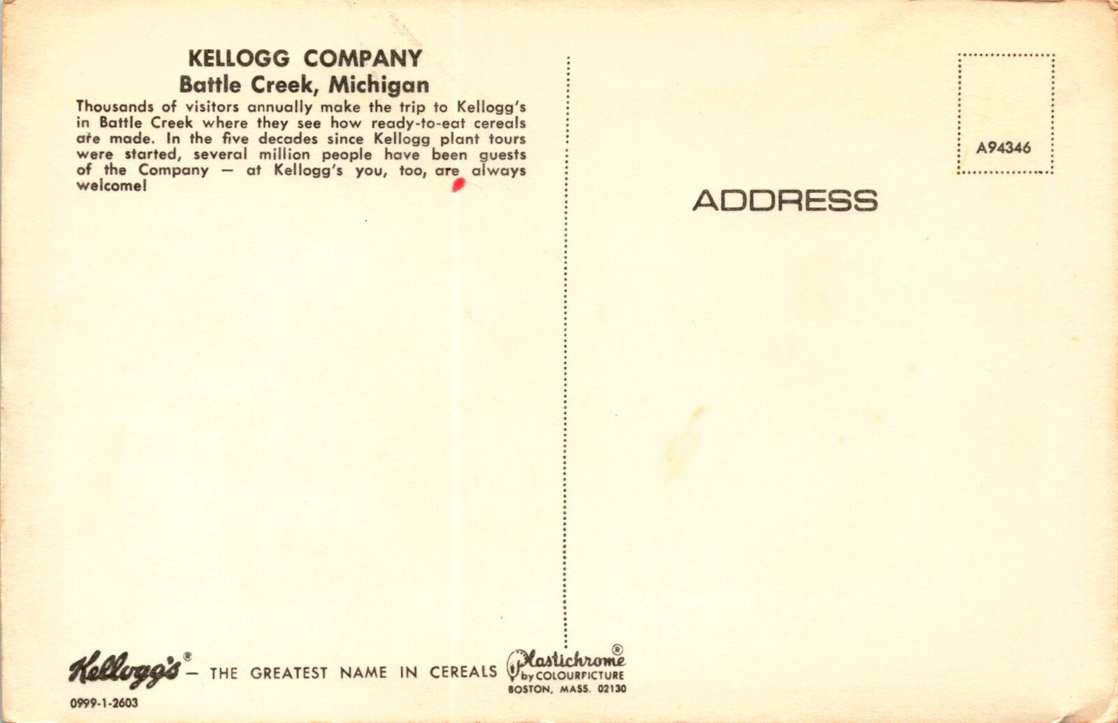 Kellogg's in Battle Creek, Michigan is a popular destination for thousands of visitors each year who want to see how ready-to-eat cereals are made. The company has been offering plant tours for over five decades and has welcomed several million guests. Kellogg's is known as the greatest name in cereals. The contact information for Kellogg's is 0999-1-2603. The address for the company is A94346, Boston, Massachusetts, 02130.