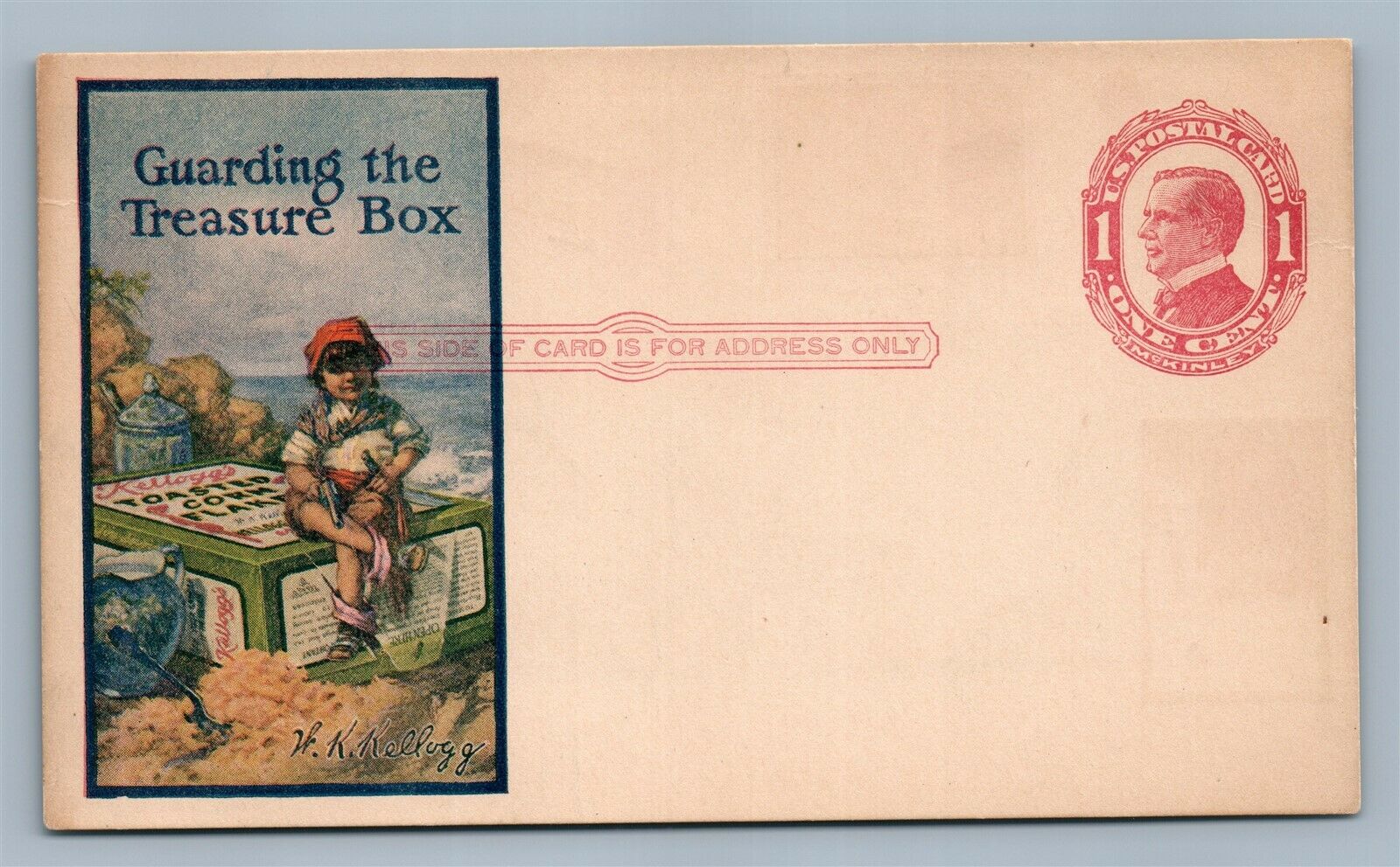 KELLOGS FLAKE ADVERTISING ANTIQUE POSTCARD McKINLEY STAMP DOUBLE SIDED RARE