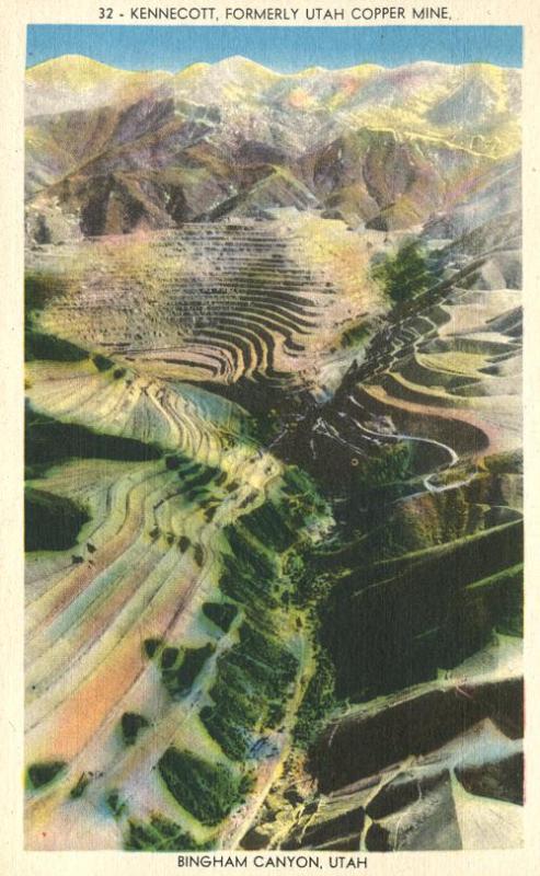 Kennecott Copper Mine - Bingham Canyon, Utah. Standard sized linen post card. Very good condition.