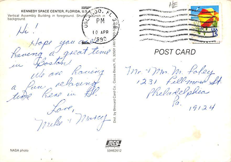 Kennedy space Center Florida, USA Space Postcard 1990,