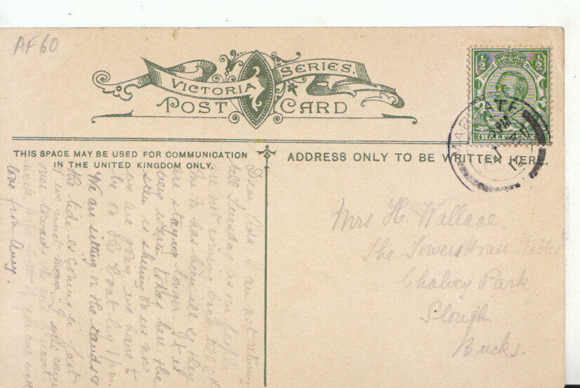 Mo's Postcards Postcard Description: Kent Postcard - Margate - Pavilion & Winter Gardens Genealogy: Used - 1912 - Mrs H.Wallace (Ada), The Towerhouse Stables, Chalvey Park, Slough, Bucks Defects: Small crease to top lefthand corner and a few marks to card Postage & Payment: For U.K residents the quoted P & P fee is for any number of postcards purchased at one time. Happy to quote for non UK residents. For multiple purchases please wait for an invoice Listing and template services provided by inkFrog
