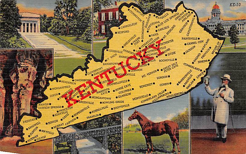 Kentucky USA Maps Postcard 1952,
