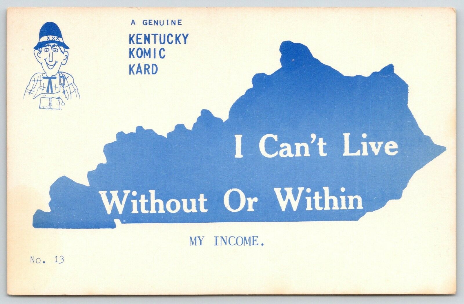 Kentucky~Comic Card~State Map Silhouette~Can't Live Without or Within Income 60s