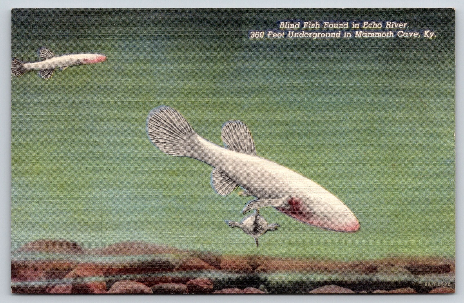 Kentucky~Mammoth Cave~Underground Echo River~Blind Fish~Linen 1950 Postcard