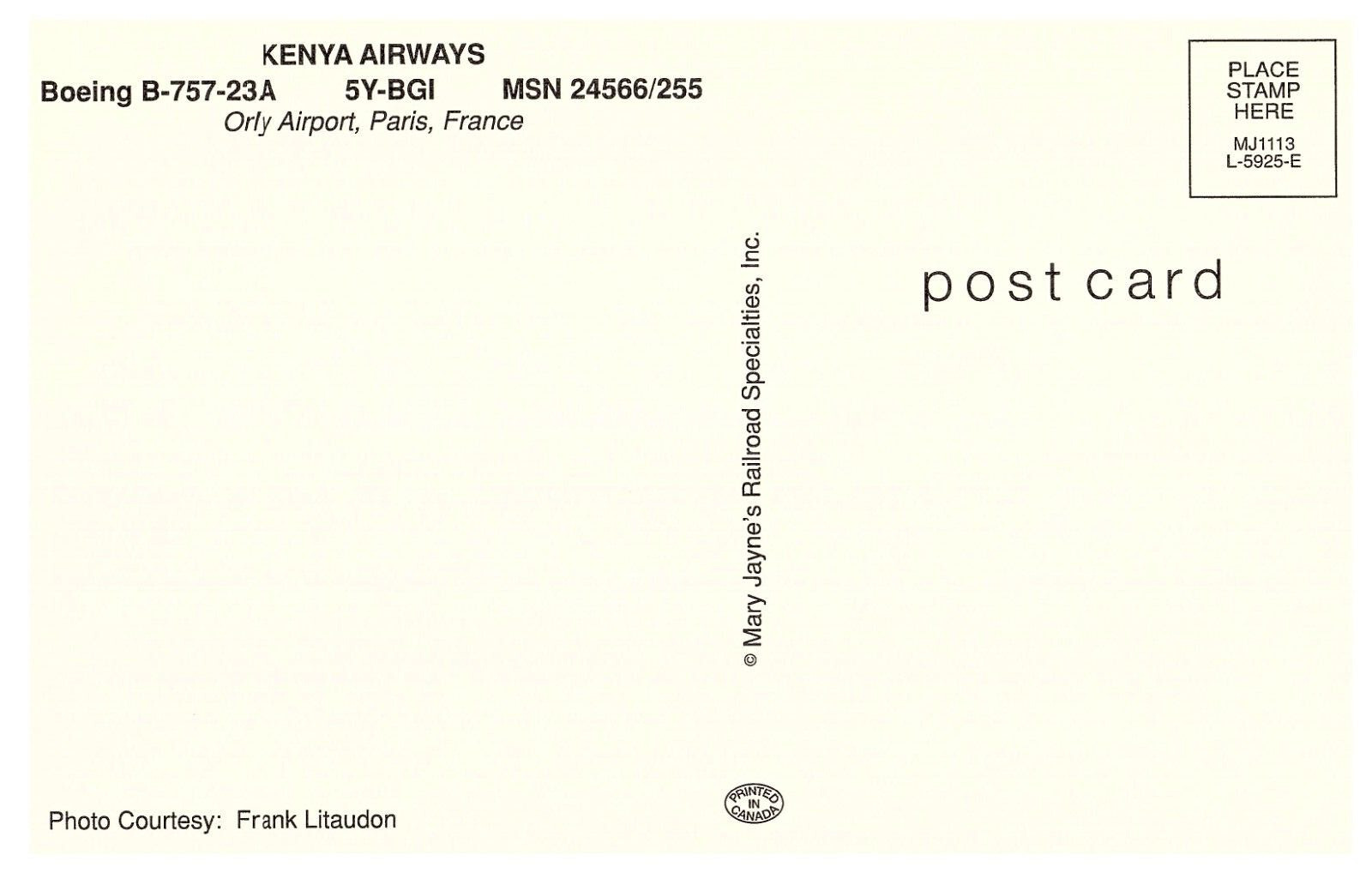 Kenya Airways Boeing B-757-23A Airplane Postcard