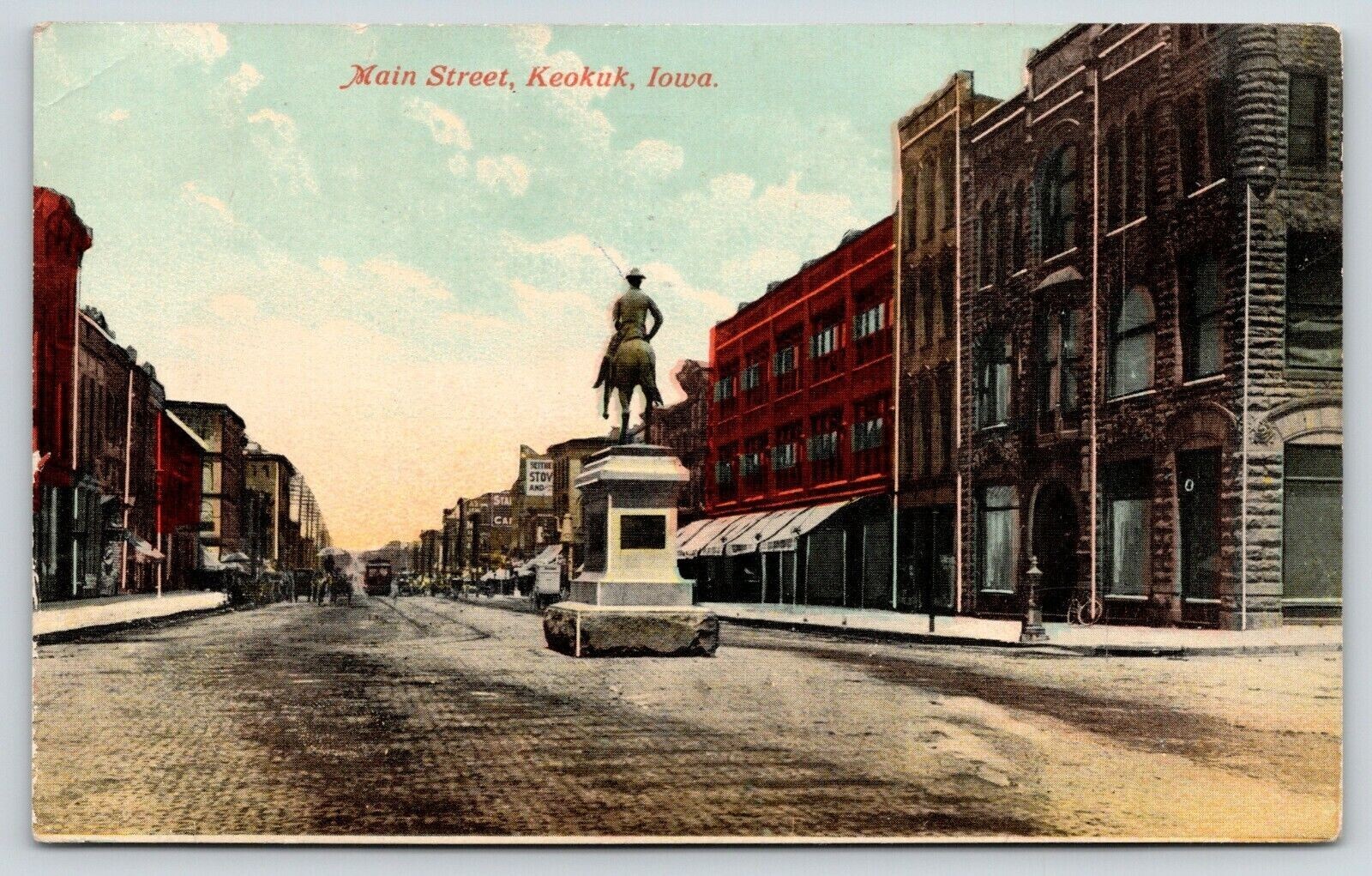 Keokuk IA~Main St~Pea Ridge TN General Samuel Curtis Statue~Hitching Post c1910