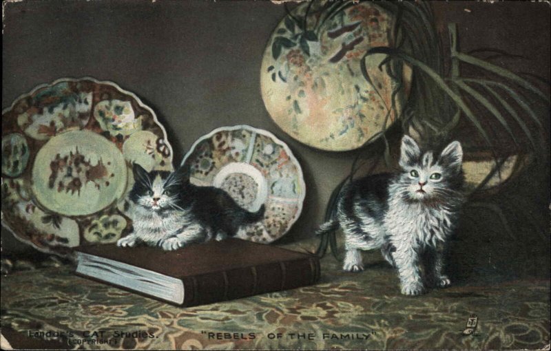 Kittens Cats Cat Studies Books Reading Comic Tuckc1900s-20s Postcard