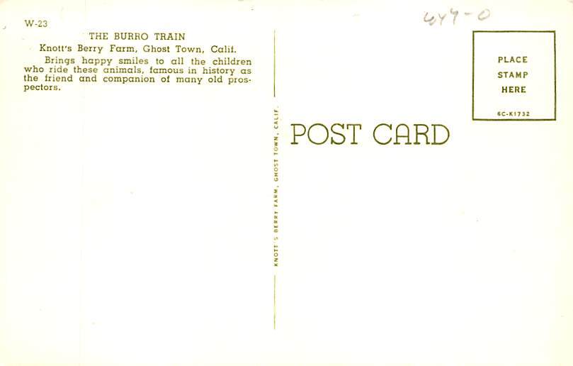 Knott's Berry Farm Ghost Town California Postcard Postal Date: Unused Grade: 2 Size: Regular Size Postcard - approximately 3 1/2 inch x 5 1/2 inch (9 CM x 14 CM) Grading Scale: Grade 1 = Perfect corners Grade ... Read More