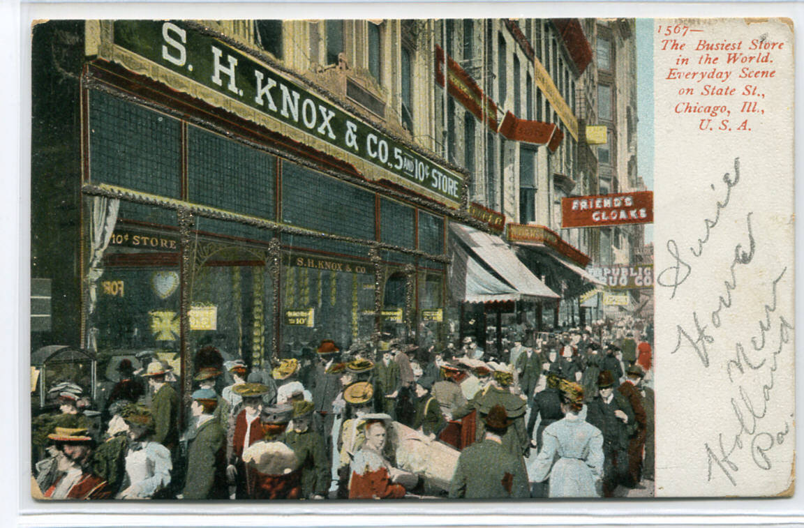 Knox Five & Dime Store State Street Crowd Chicago Illinois 1907 postcard