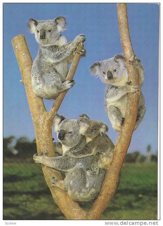 Koala Family, 50-70s :: Antique Postcard, 4" by 6", Chrome, EX