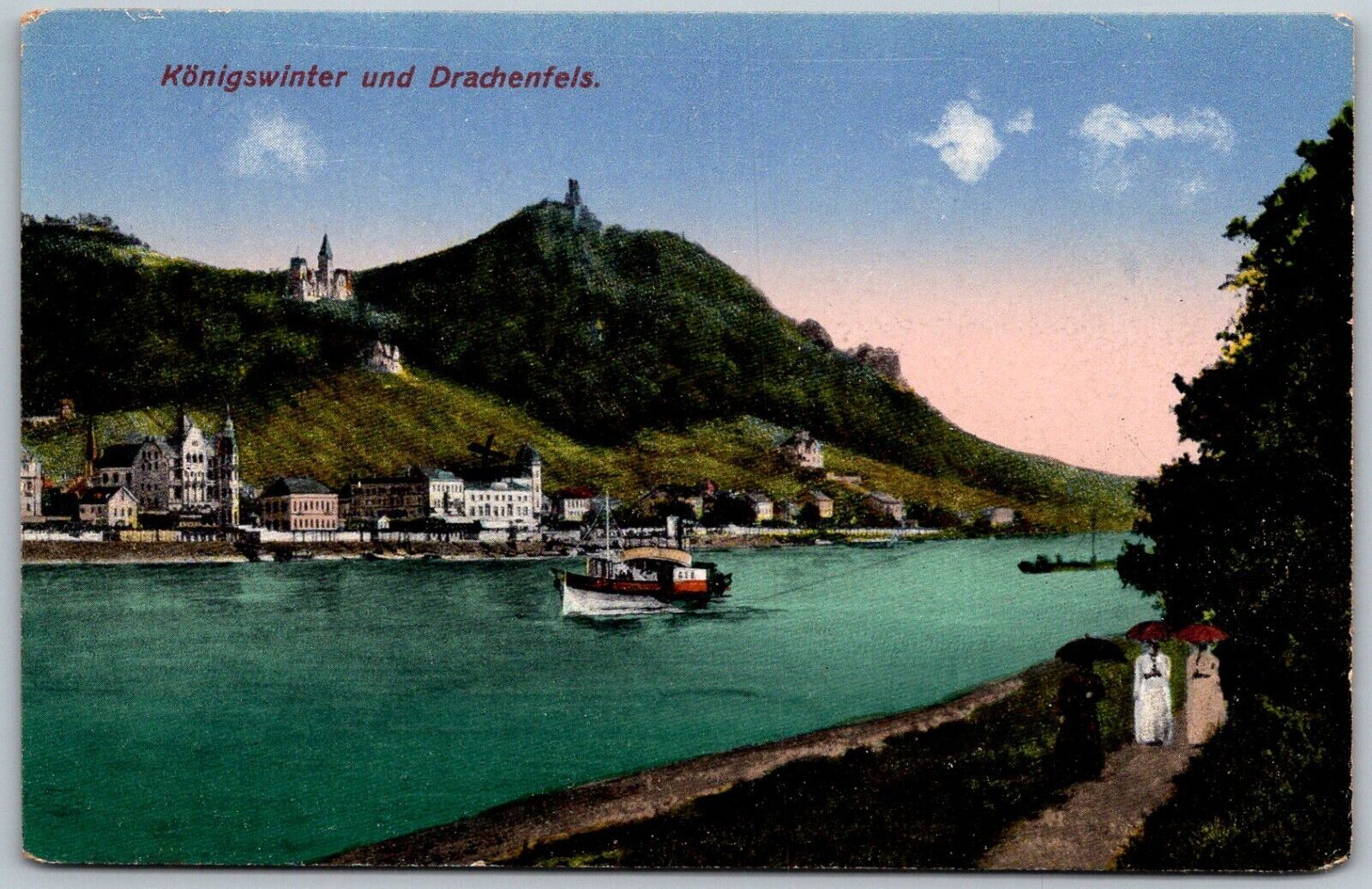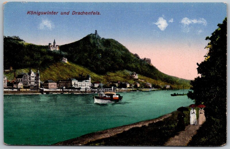Konigswinter Germany c1910 Postcard Drachenfels Castle Boat Town View