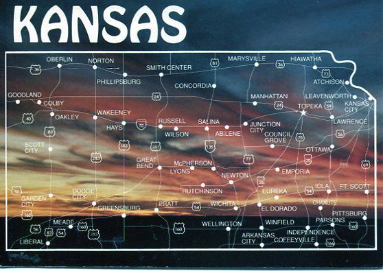 KS: KANSAS SUNSET MAP POSTCARD